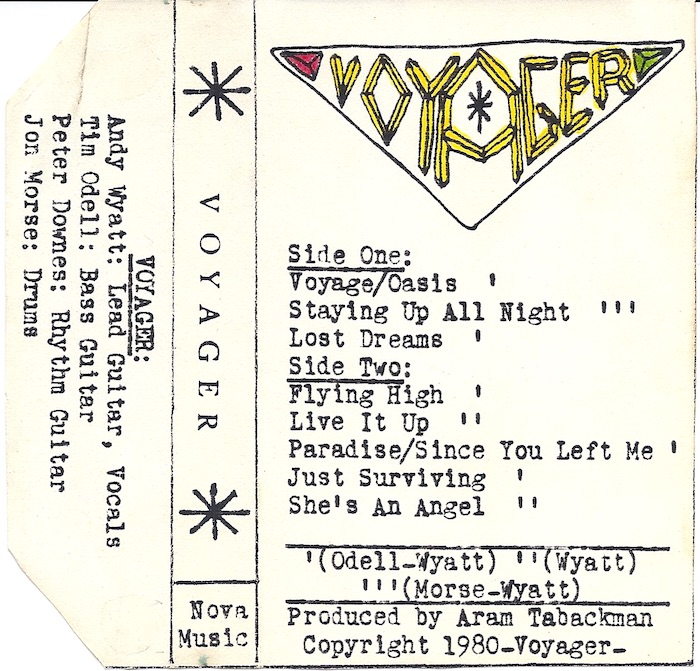 This is a digitization of the "Aram tape",  10 songs recorded in March 1980 with 8 mics mixed to a stereo cassette at record time. Voyager's fan Aram recorded it when most of Voyager were 14 years old. It's a classic recording of some stunning pop songs.