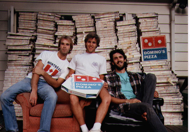 We were in a nameless limbo that summer, having decided we were tired of the bug spray jokes and punk associations (Black Flag), and before the Nines gig we decided to call ourselves Everything But Anchovies. The name came from a menu item at Domino's pizza, which was of course a pizza with everything but anchovies. We'd never ordered it, but we'd been ordering pizzas for our Saturday night rehearsals/jams in Jon's basement for years. In fact, we'd recently passed $2000 spent on pizzas, and every box was stacked up behind Jon's drums.