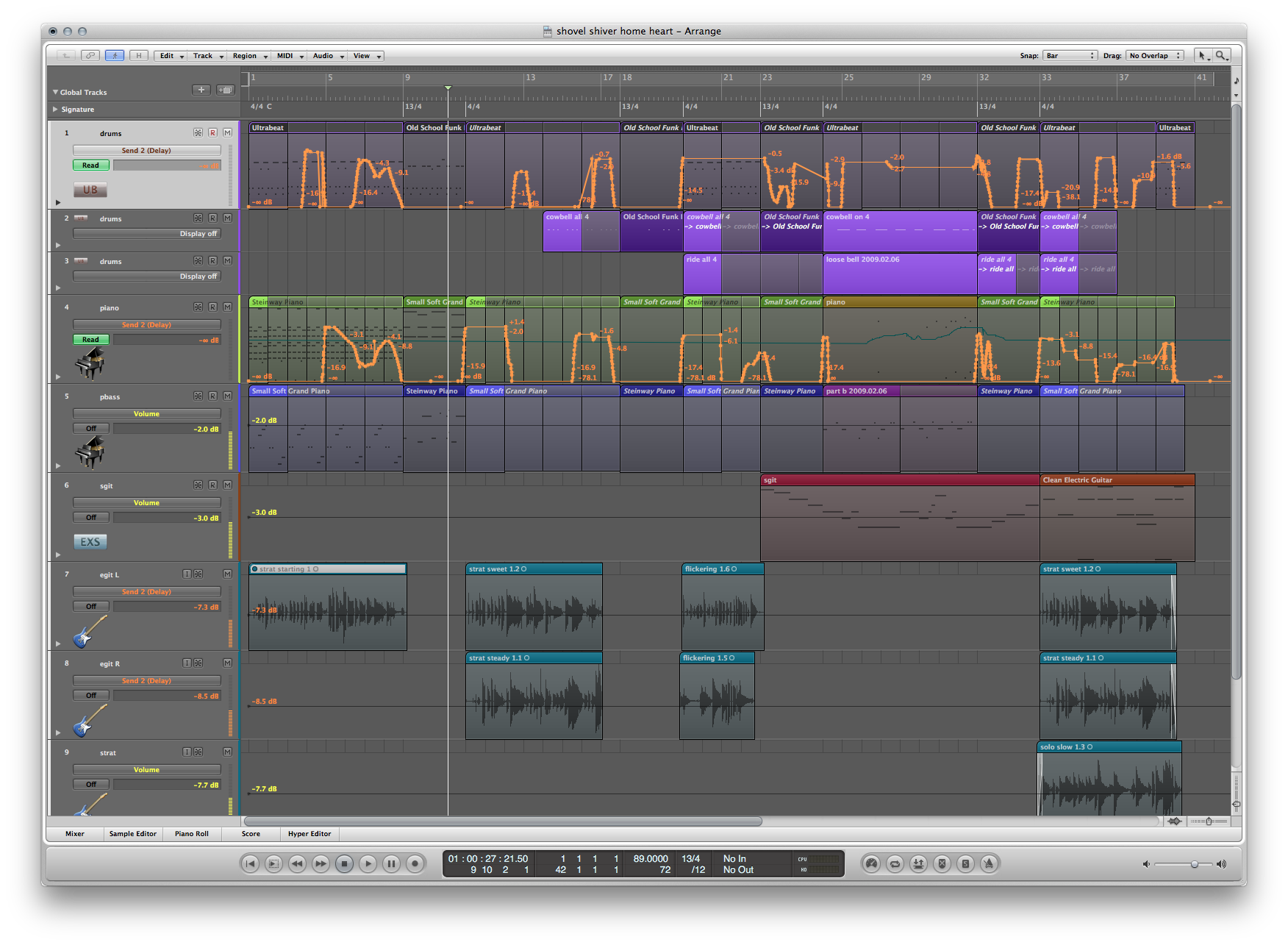 | preambulator | Andy: kick drum (Ultrabeat), electric piano (EVP88), piano (EXS24, soft baby grand, 2 tracks), electric guitar (Strat), electric bass guitar.