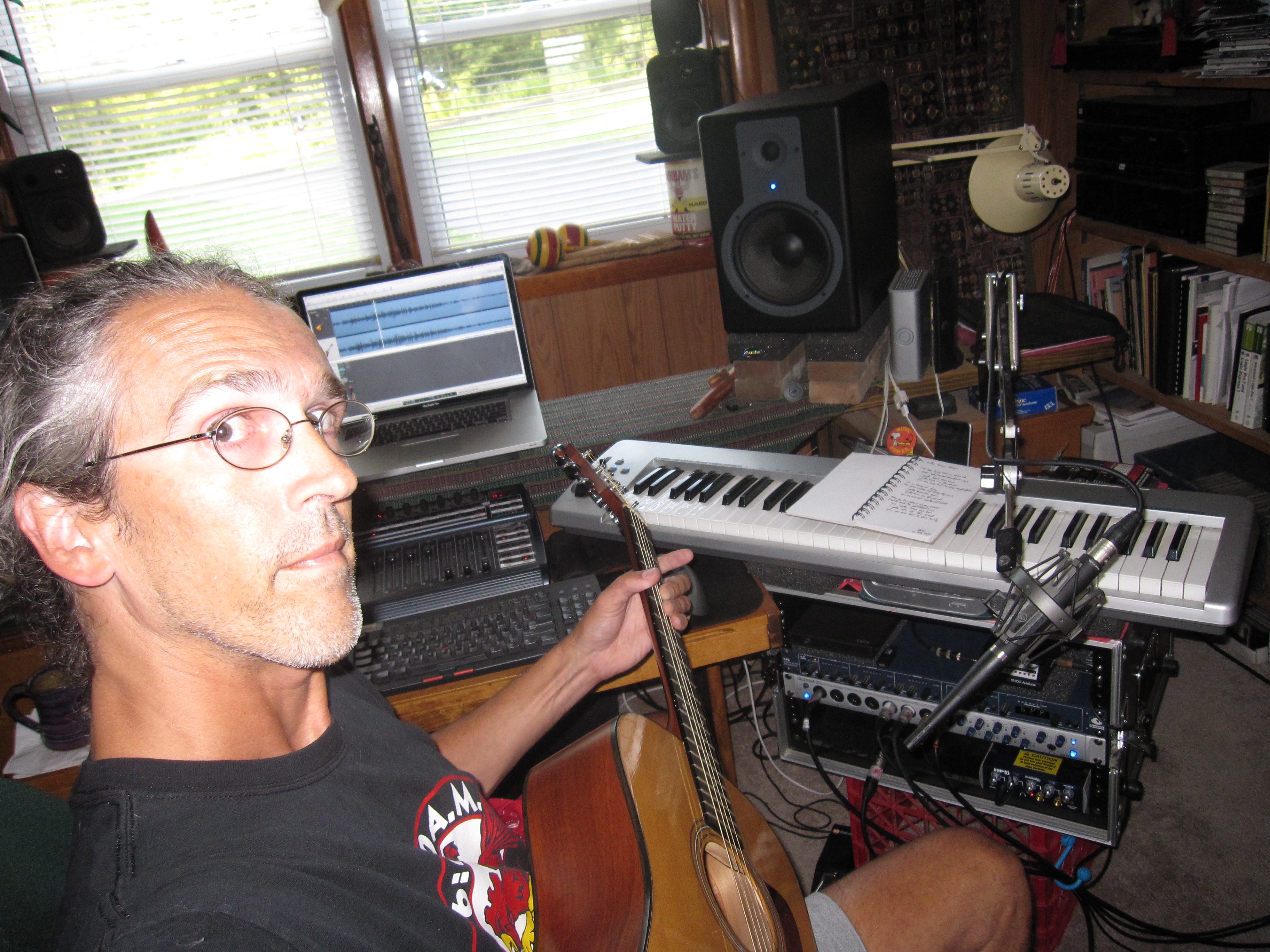 There are cassette tapes by "The Andy Band" dating back to 1979, when Andy was 14 years old, and he is still an avid recording musician. Sometimes The Andy Band is all about "hit record and go" improvisation, other times it's all about one-man-band multi-tracking in the studio. Since 2010, Andy has been playing some of these songs live near his new home in Vermont at open mics. He relishes the thrill of improvising with an audience, as well as singing three-part harmonies and playing bass with players there. But he also loves building up a song with layers and layers of Andys, singing and playing everything.