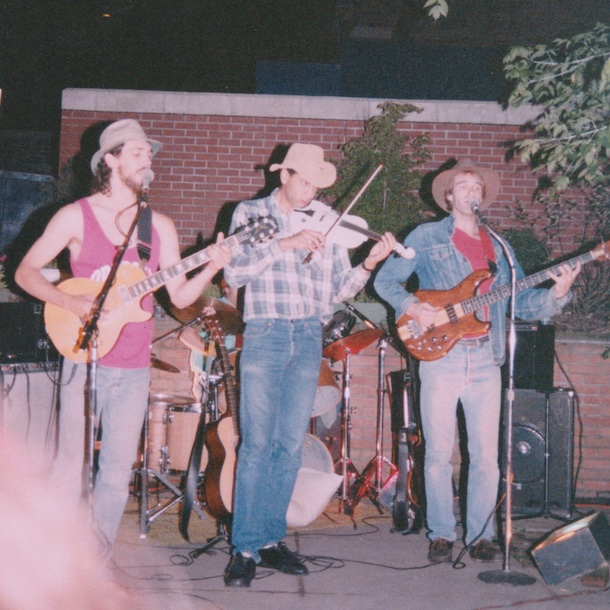 The band was writing somewhat raw, stripped-down songs during that fall of 1989, songs that sounded good as a three-piece band, because we'd just gone back to being a three-piece band after about a year of having some extra band members. During the fall of 1988 we'd played a lot of gigs with Jorge Cuevas on congas and other percussion, and in the spring and summer of 1989 we had Ayman Mobarak on bass and violin (which allowed Tim to play guitar when Ayman played bass). Our friend Bill Herz took the mic and played guitar with us for 4 songs or so for a few shows in the summer of 1989. And our sound man there for a while, Danny Speer, would often sing backing vocals from the mixing board. That fall, we were focusing on the trio, and my digital delay had pooped out, so we were keeping it really simple.