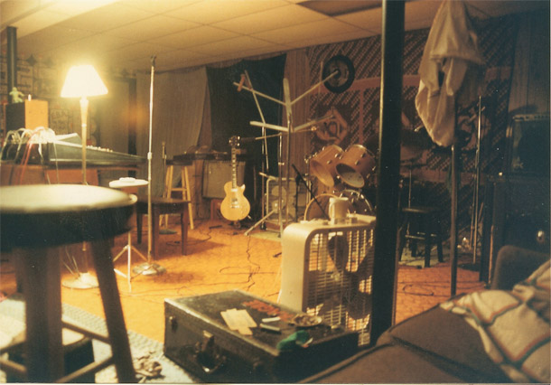 That's this version, which is not changed much from the Brown Carpet version. Both are on the Brown Carpet and Full Moon album. It was recorded on my Tascam 4-track reel-to-reel with a rented mixing board. I think we had 4 mics on the drums, one on the guitar amp, and one on the bass amp, and we might have had direct ins for the guitar and bass, too. But all those tracks were mixed live and printed to two tracks. Then I overdubbed acoustic guitar and vocals in the other two tracks and made a stereo mix to cassette.