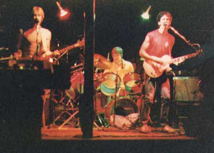 a weekend in Philadelphia, and trips to Martha's Vineyard and Maine; and Tim took a trip up to the Kostrub's family land up north. The summer culminated in a magnificent trip to the Adirondacks: Geoff and the band drove up the day after our funny and fun gig at the Interlaken Olde Home Days". I'll never forget the deep stars up there, and good laughs and canoeing. We had a gig at The Nines booked for October 20, and were really happy that we had "almost had enough songs to make our sets at the Nines with songs we really like to play". (Pic from that gig below.)